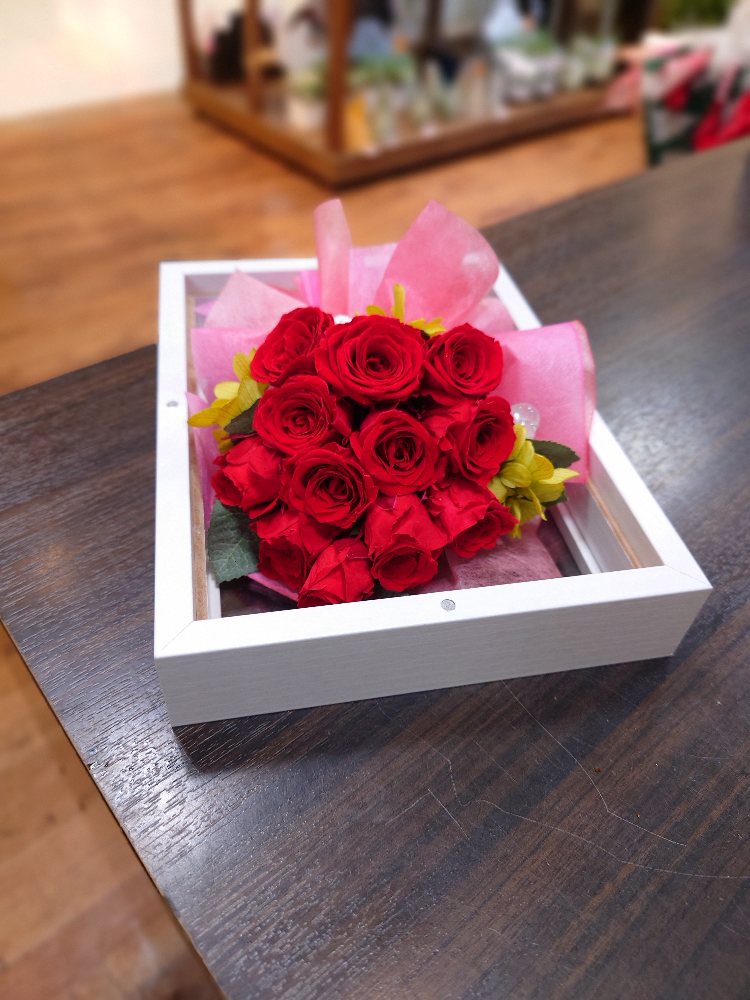プロポーズにオススメ プリザーブドフラワーの赤バラ12本の花束