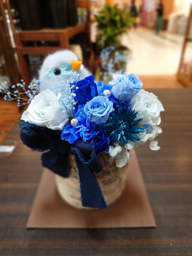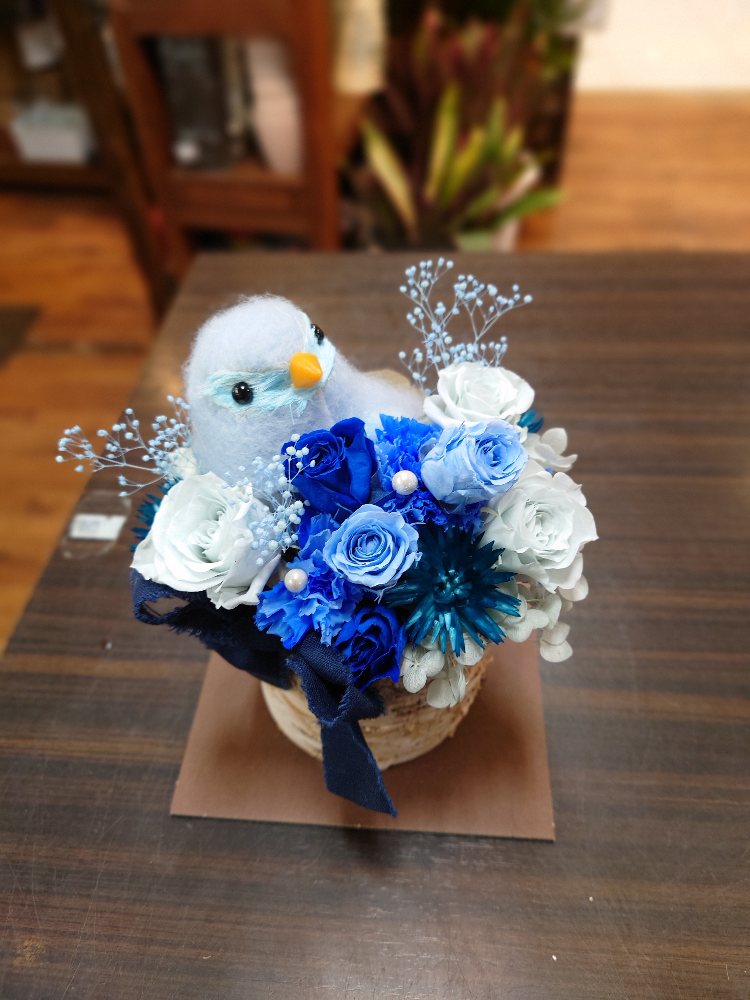 小鳥とプリザーブドフラワー 鳥好きにはたまらない可愛らしい仕上がりになっています