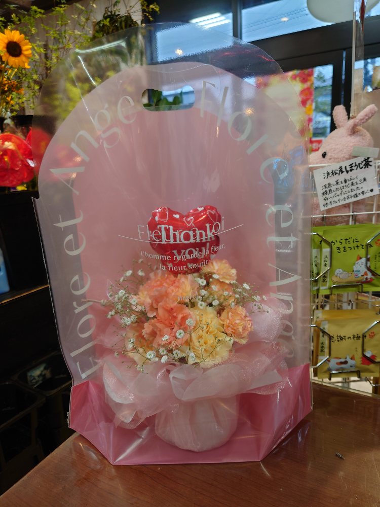母の日の贈り物 黄色オレンジ系マジカルブーケ Thank you!バルーン付き