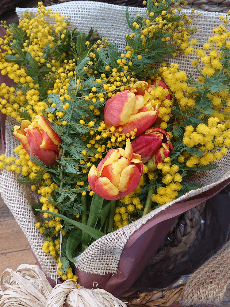 ミモザとお任せチューリップ5本の花束