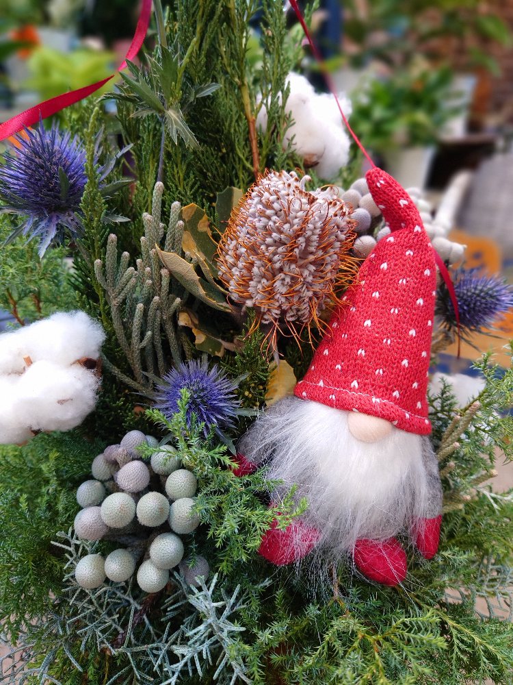 北欧の妖精トムテのクリスマステーブルアレンジメント
