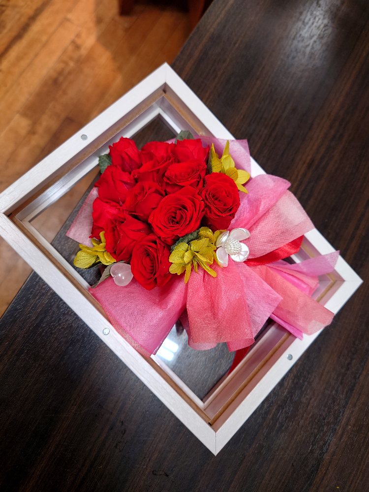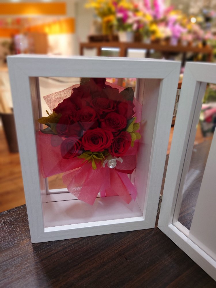 プロポーズにオススメ プリザーブドフラワーの赤バラ12本の花束