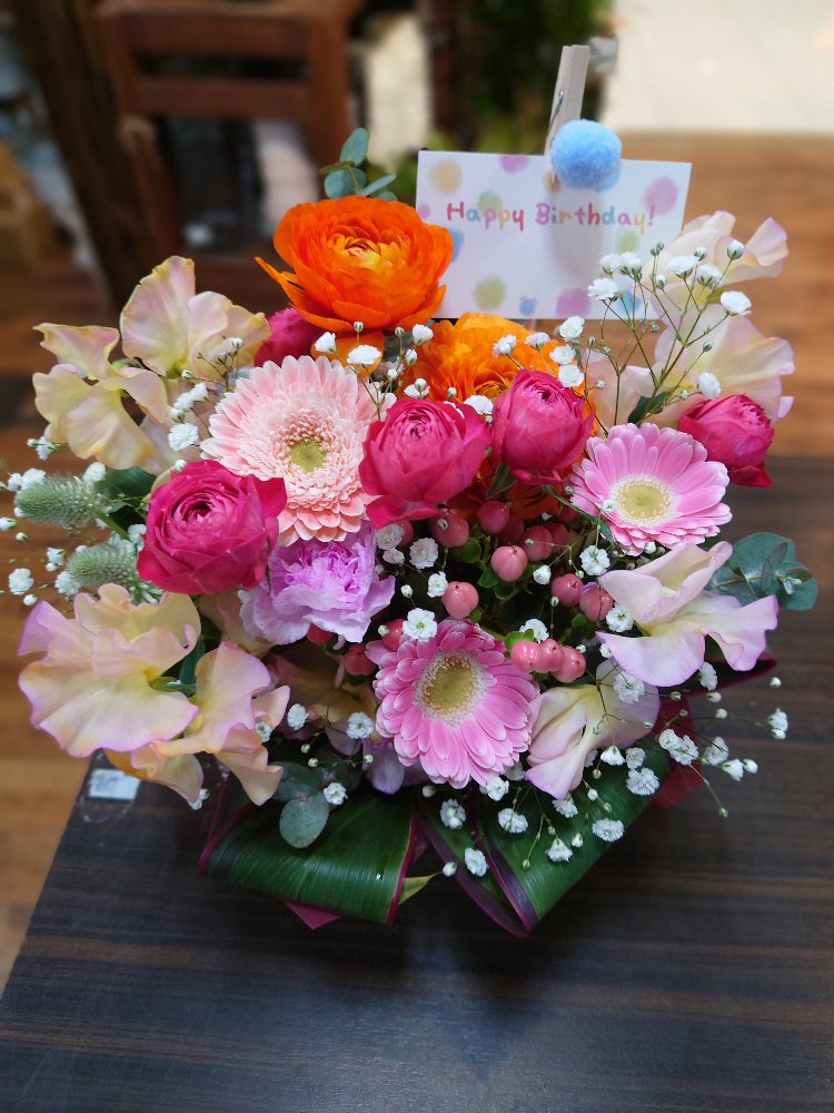 仕入れによりお花の種類や色目が多少変わりますのでご承知お願いします。