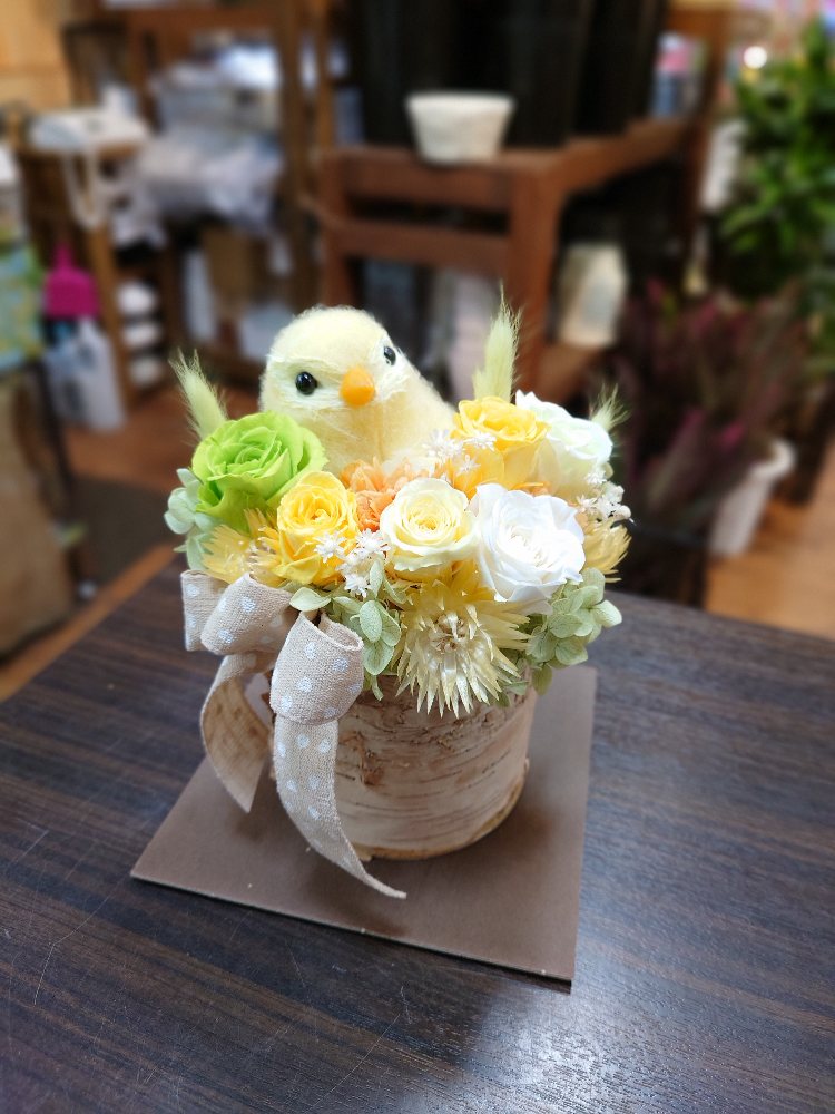 小鳥とプリザーブドフラワー 鳥好きにはたまらない可愛らしい仕上がりになっています